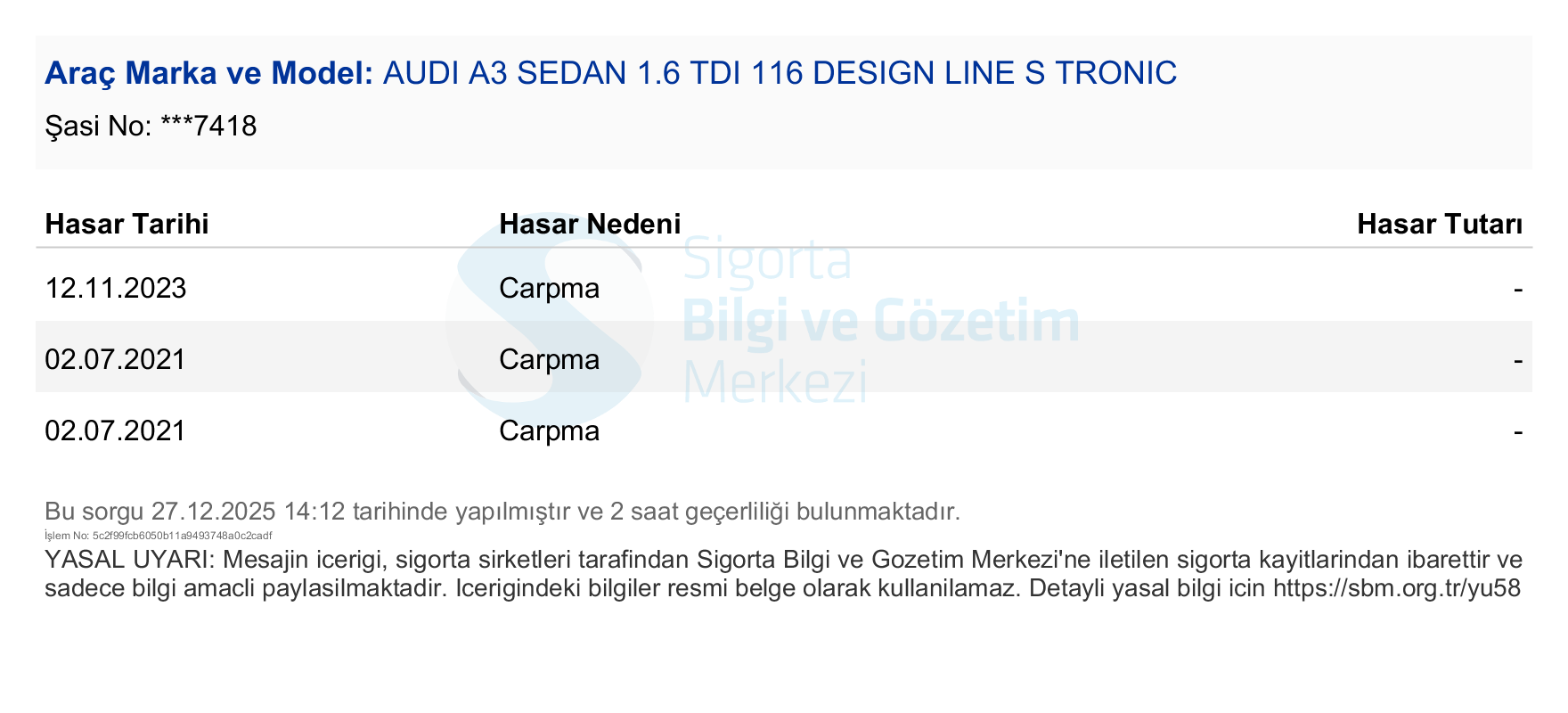 ARAÇTA GÖZLE GÖRÜLÜR EZİKLER ÇİZİKLER VE HASARLAR MEVCUTTUR. TRİGER DEĞİŞİM BİLGİSİ ALINMALI DEĞİŞİM BİLGİSİ YOK İSE DEĞİŞMELİ. LASTİKLER DEĞİŞİM ÖNERİLDİ. ÖN DİSK BALATA ORTA. ARKA DİSK BALATA KÖTÜ. SOL ÖN KAPI BOYASIZ ONARIM. SOL ARKA KAPI BOYASIZ ONARIM. KAPUT AYAR İŞLEMİ MEVCUT. PARTİKÜL FİLTRESİ TEMİZLİK BAKIM KONTROL. V KAYIŞI GERGİ KASNAĞINDA SES MEVCUT. PERİYODİK BAKIM ÖNERİLDİ. EGZOZ SİSTEMİ SES MEVCUT.